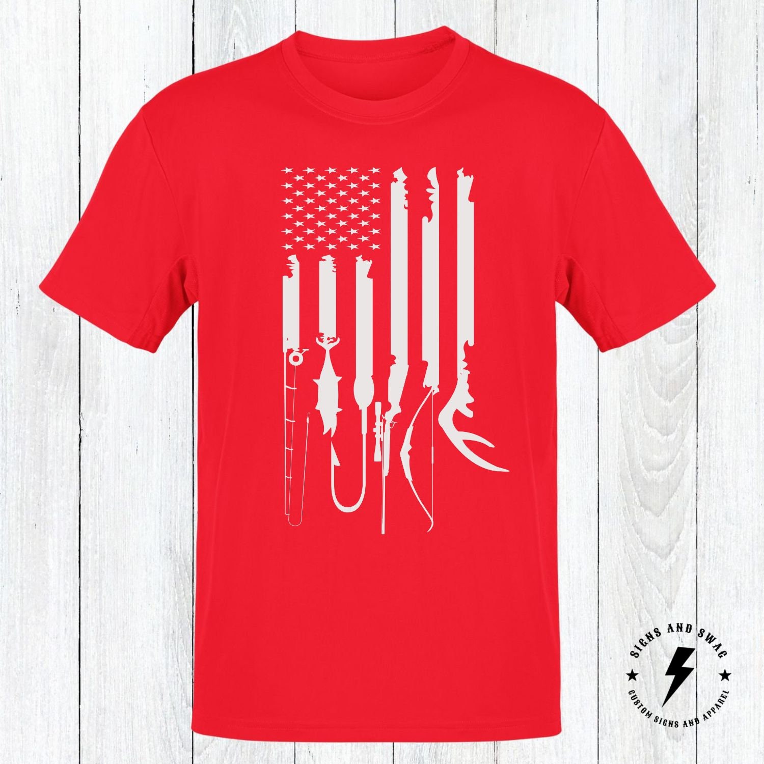This awesome hunting and fishing american flag graphic is printed on 100% cotton shirts. We use the best quality designs and printing techniques to give you a product you will absolutely love. We print with commercial DTG and DTF equipment and only use Oeko-Tex Eco Passport Certified Ink. Please see sizing images on the listing for size and measurements.