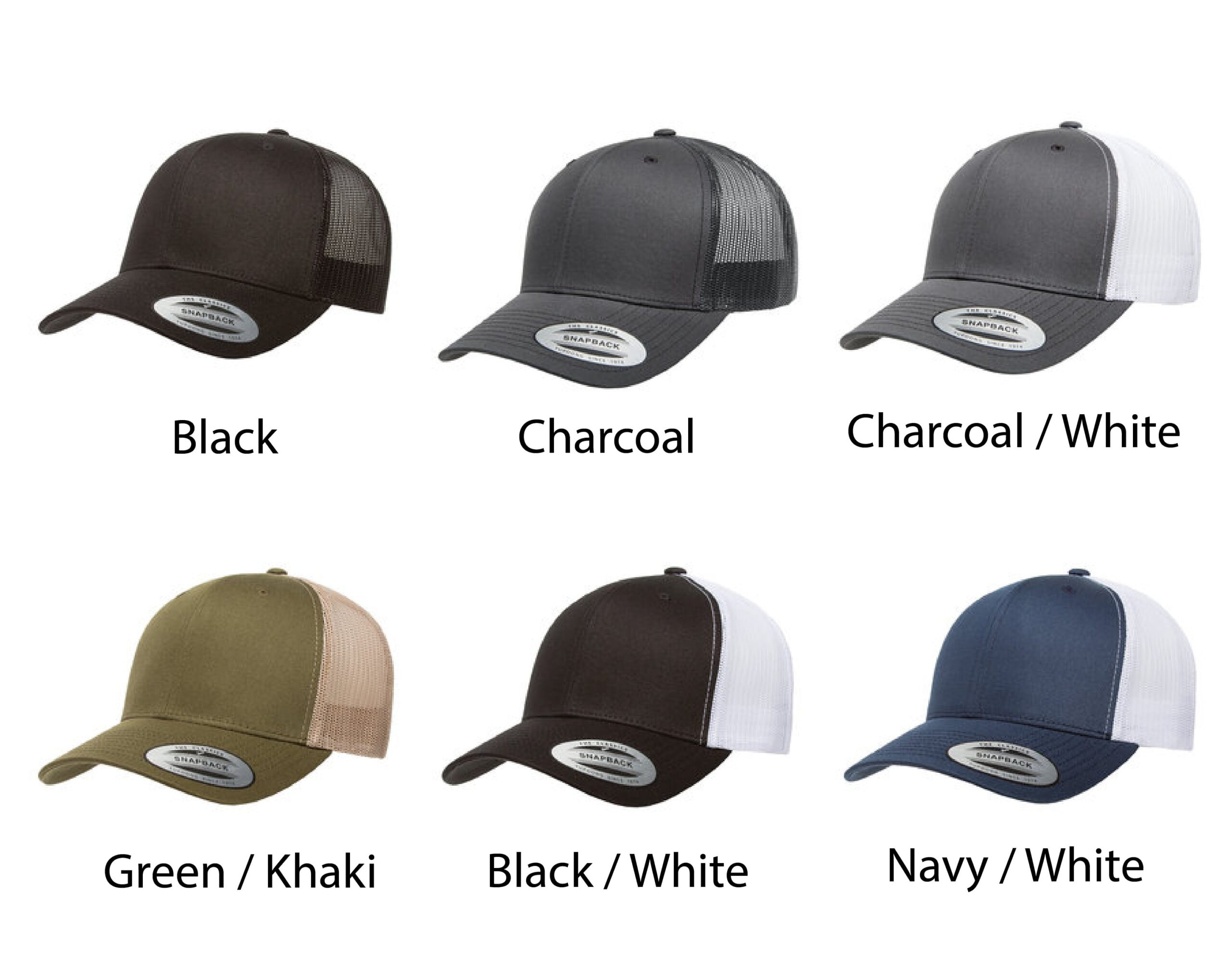 The hats are the popular trucker style snapback that look great and are available in several colors – see available colors.