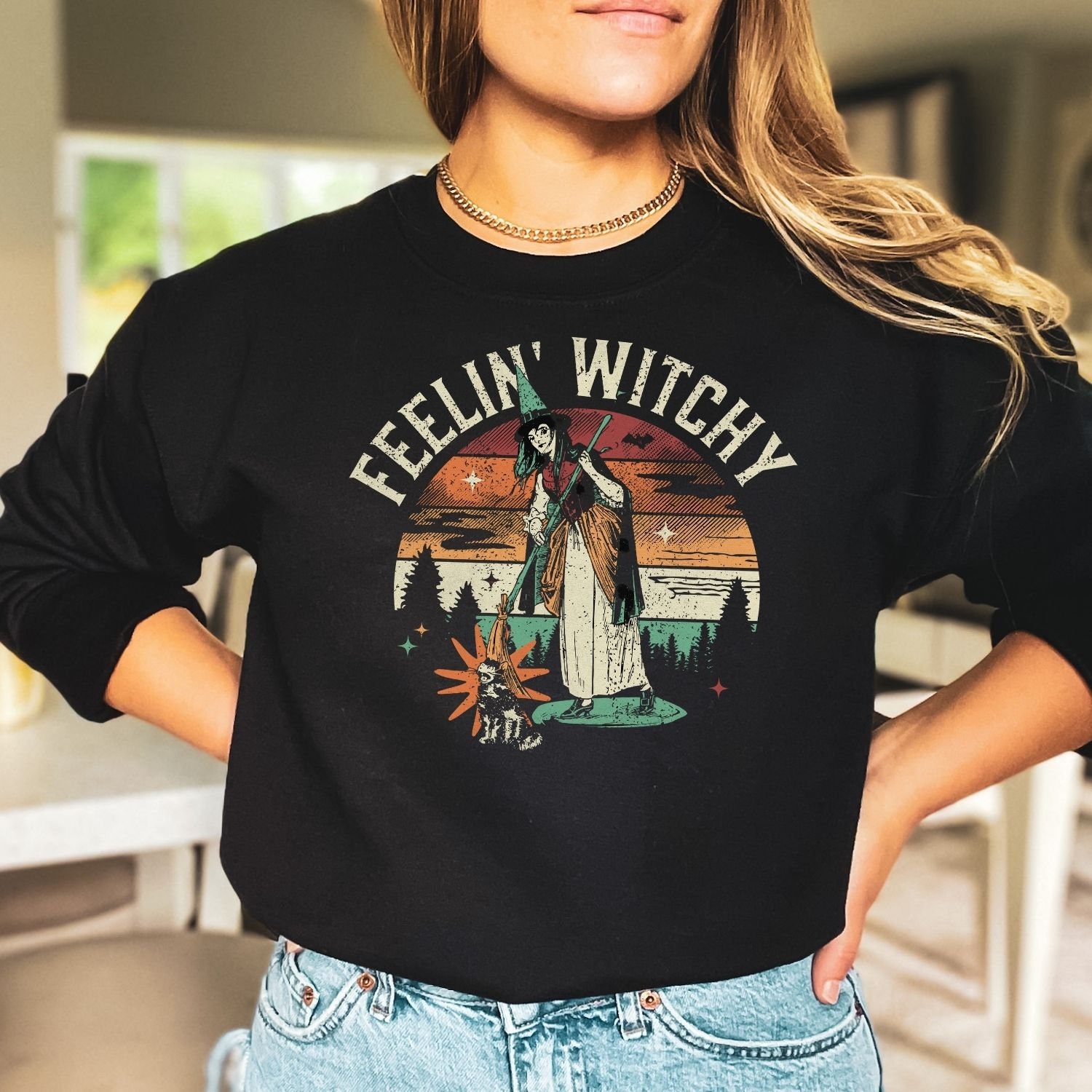 Feelin’ Witchy Halloween Sweatshirt, Halloween Witch Shirt, Halloween Shirts, Halloween Sweatshirt, Funny Halloween Shirt