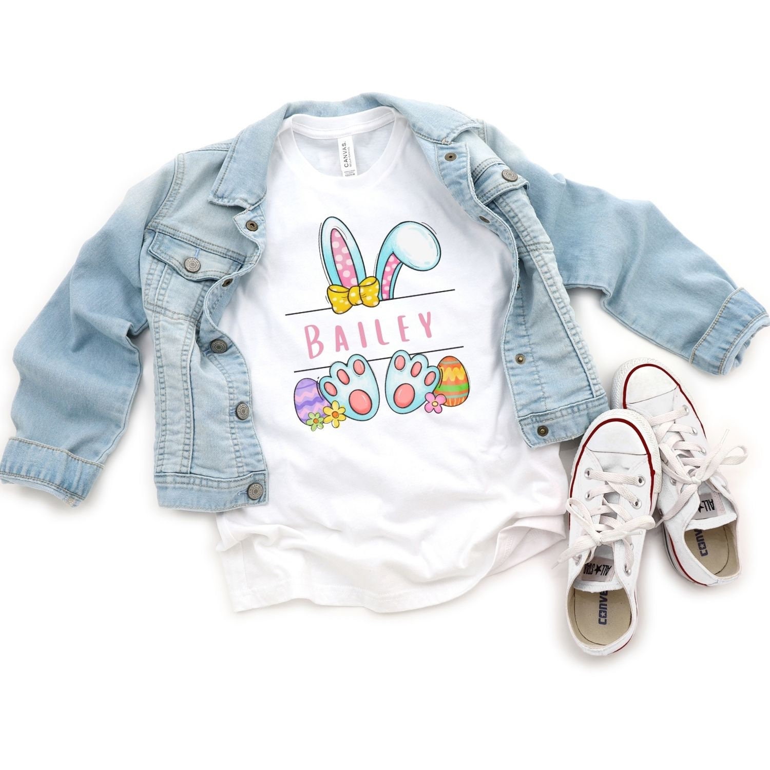 Girls Personalized Easter Shirt, Girls Personalized Name Easter Bunny T-Shirt, Personalized Easter Gift, Youth, Toddler, and Onesies® Sizes