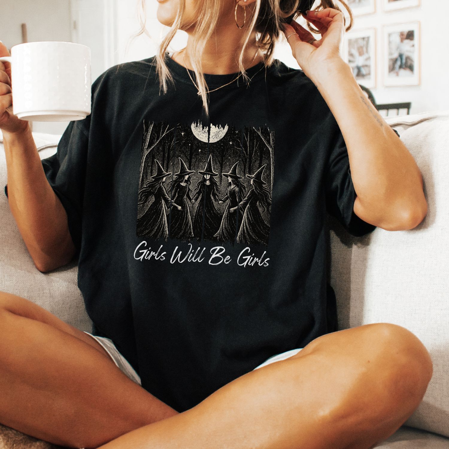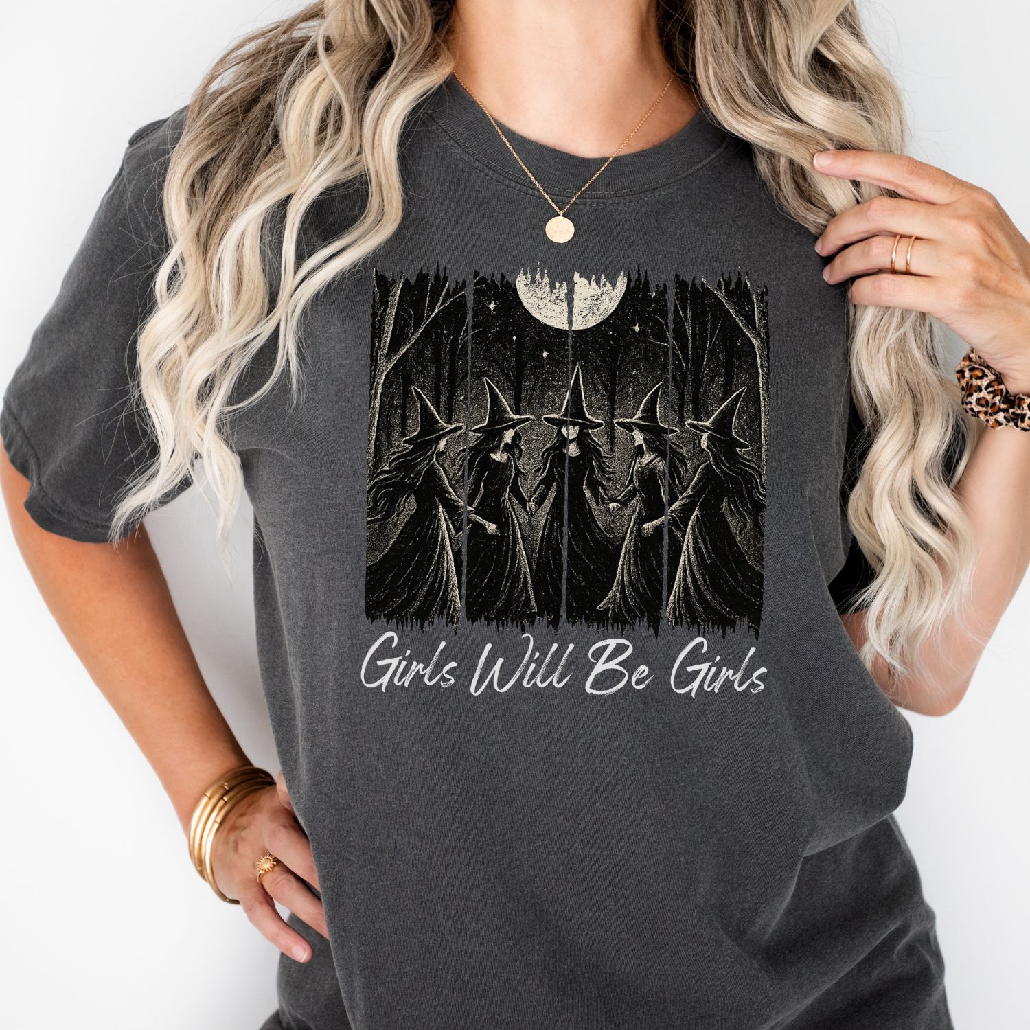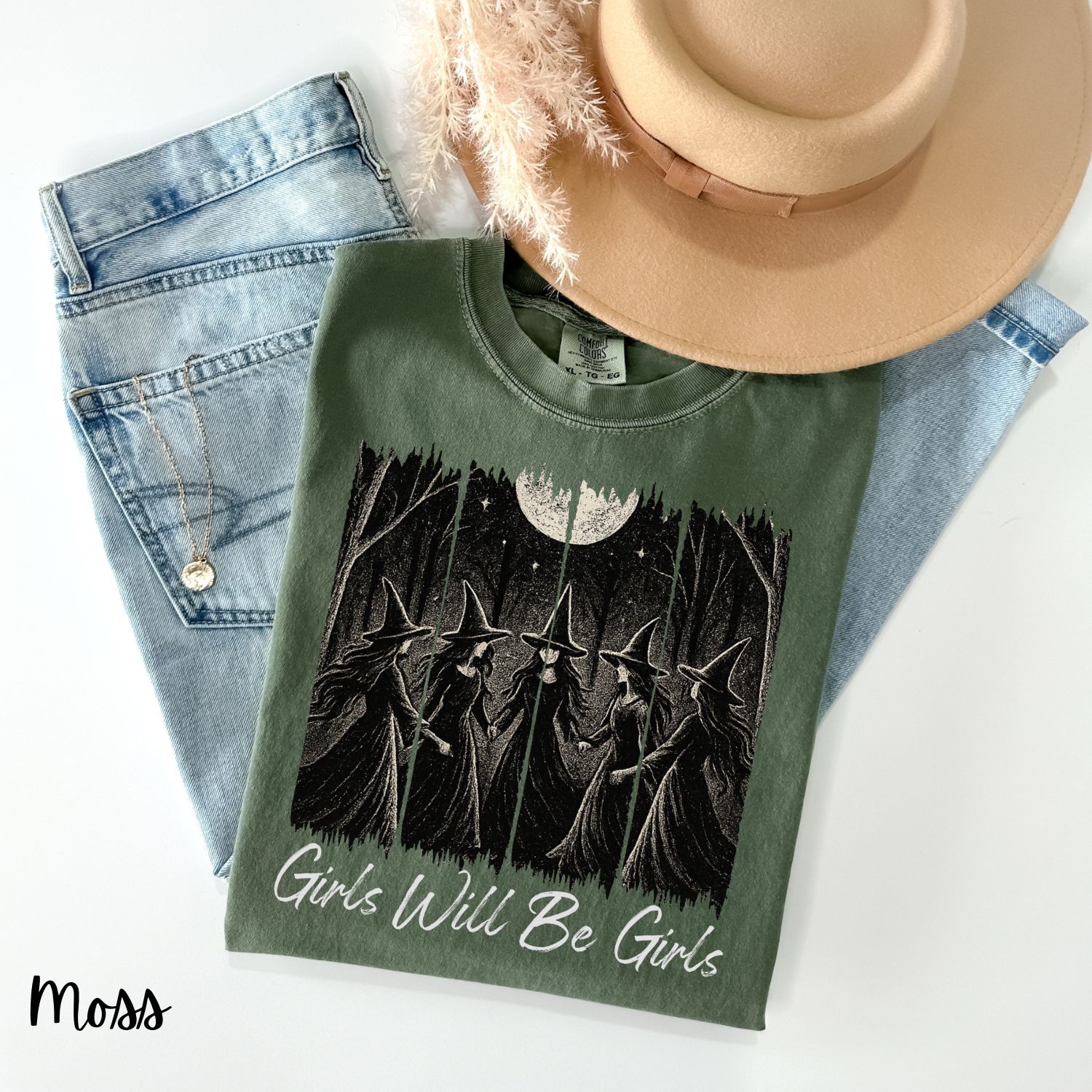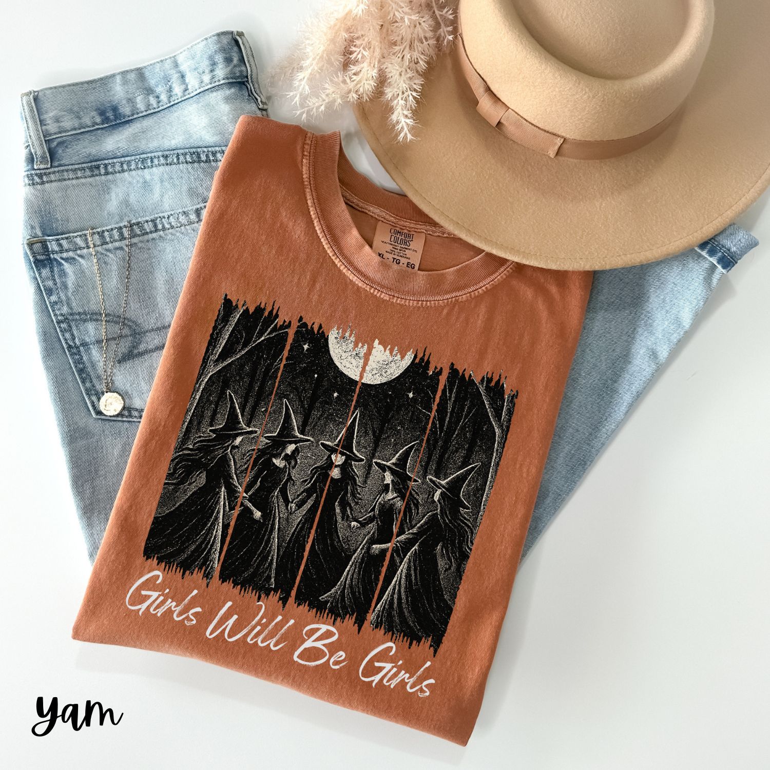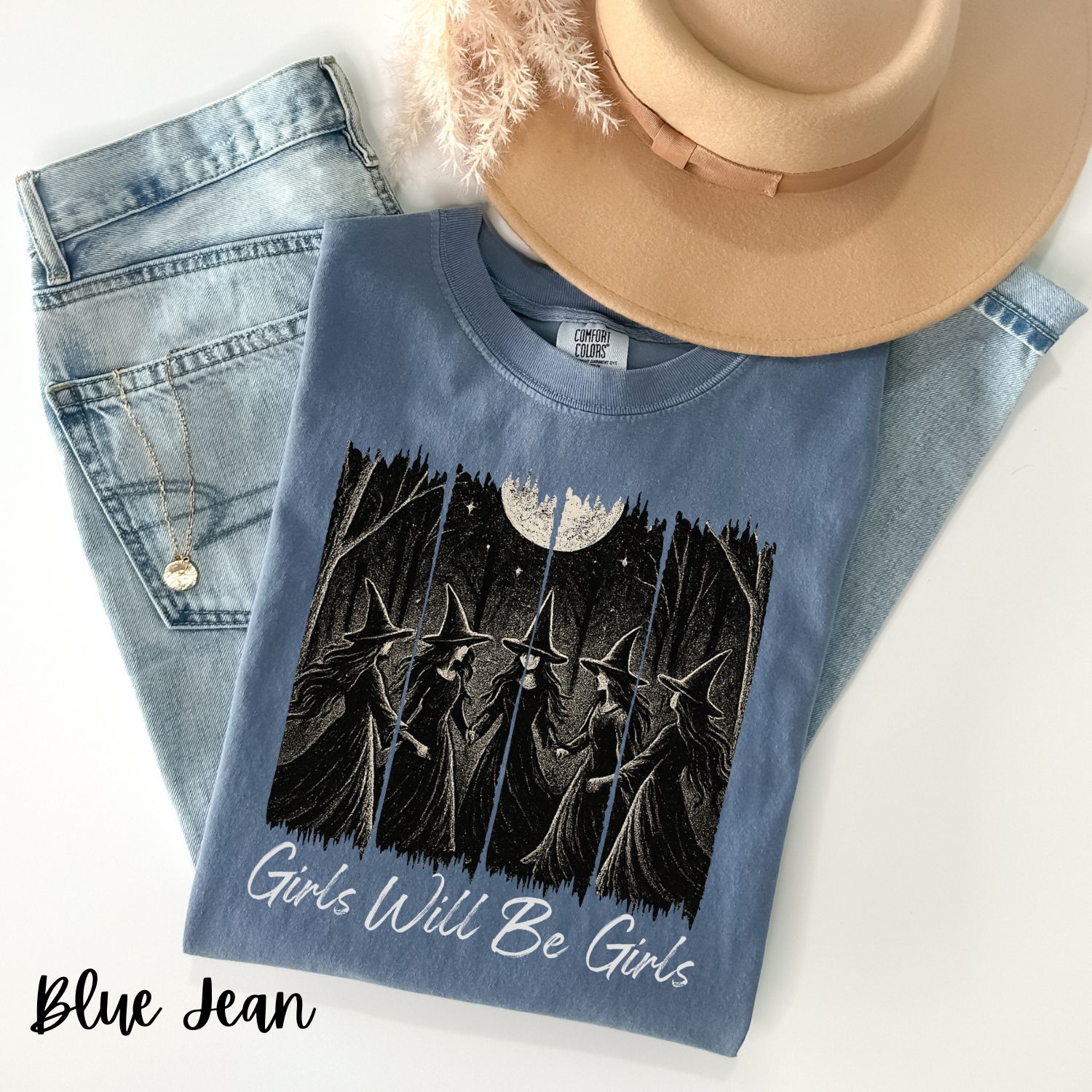 Girls Will Be Girls Comfort Colors Shirt, Witch Graphic Tee, Cute Halloween Shirt, Fall Cozy Tee, Witchy Girl Shirt, Halloween Witchy Shirt
