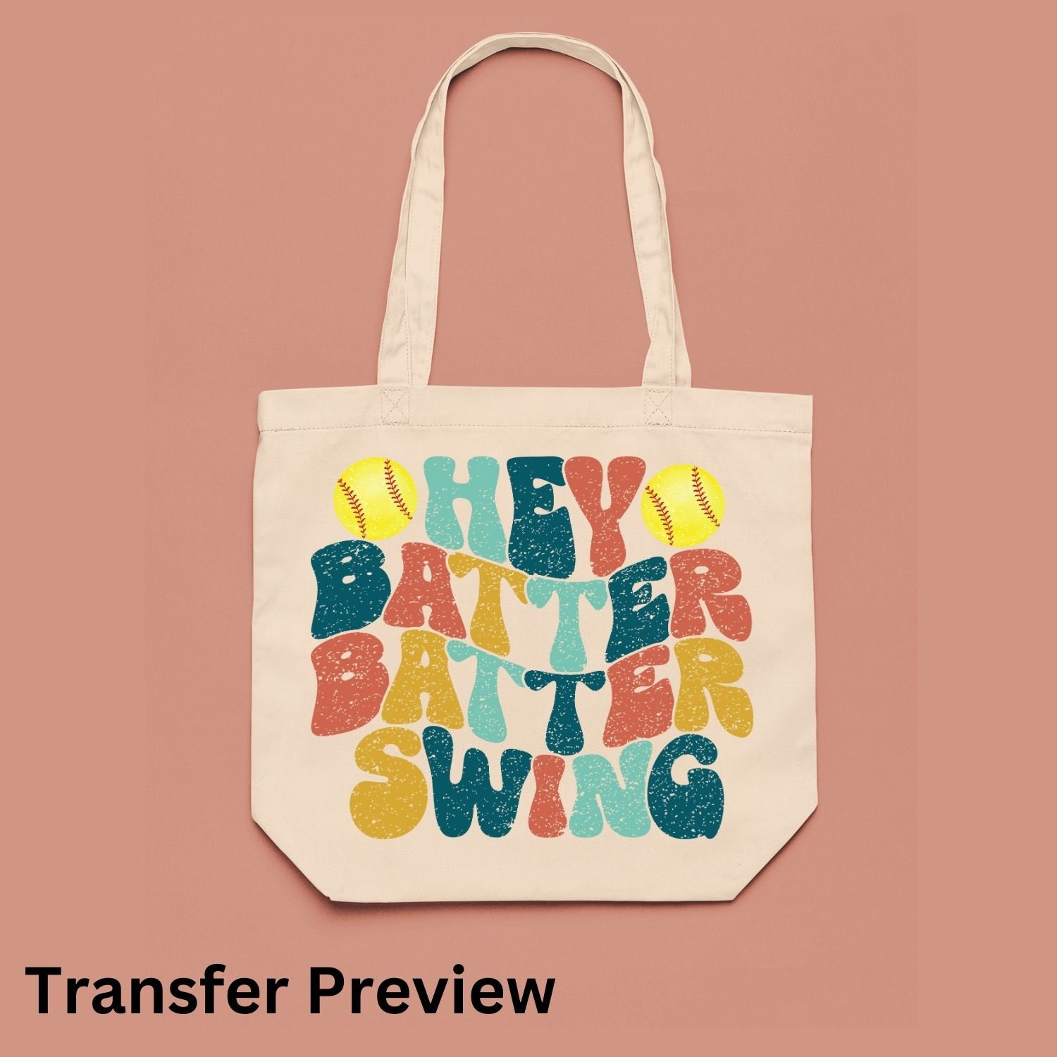 Hey Batter Batter Swing Softball Transfer, Softball Mom, Softball Dad, Ready To Press DTF Transfer, Heat Press Transfer, Easy Apply