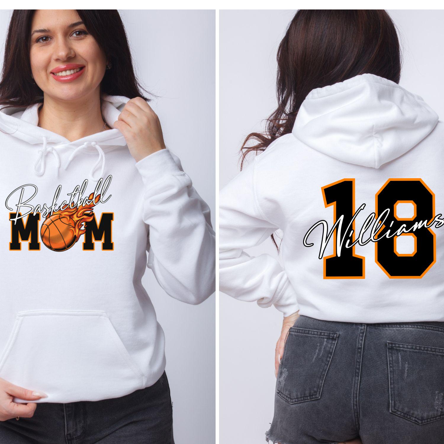 Personalized Basketball Mom Hoodie With Player Name And Number, Available in T-Shirts And Crewneck Sweatshirts. Basketball Gameday Hoodie.