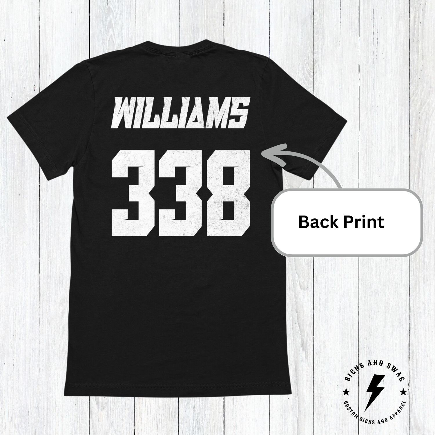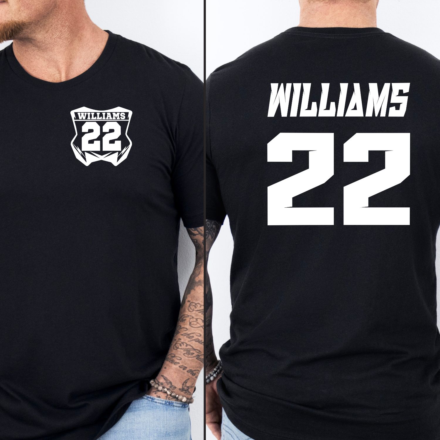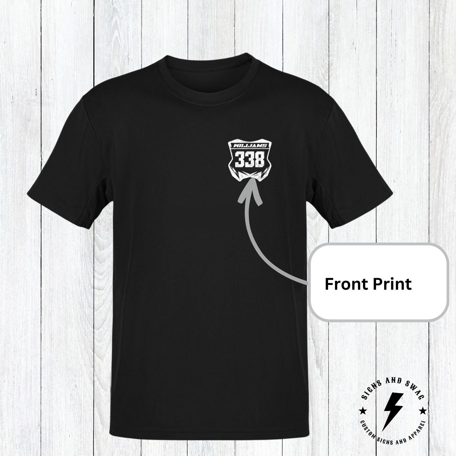 This personalized motocross dirt bike graphic with your custom rider name and number plate printed on the front and your name and number printed on the back. Available on cotton Tees, crewneck sweatshirts, or hoodies. We use the best quality designs and printing techniques to give you a product you will absolutely love. Please see sizing images on the listing for size and measurements.