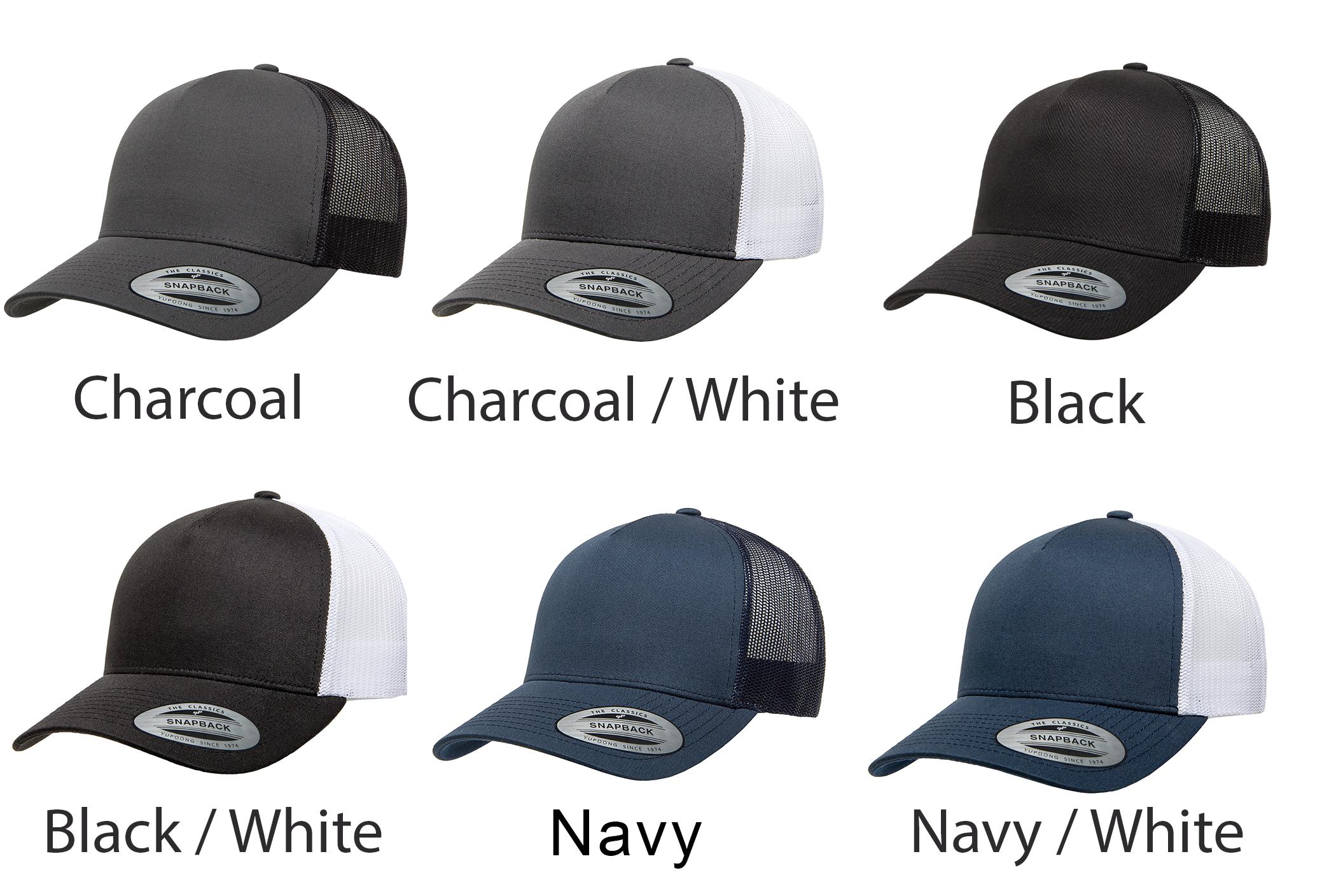 The hats are the popular trucker style snapback that look great and are available in several colors – see available colors.