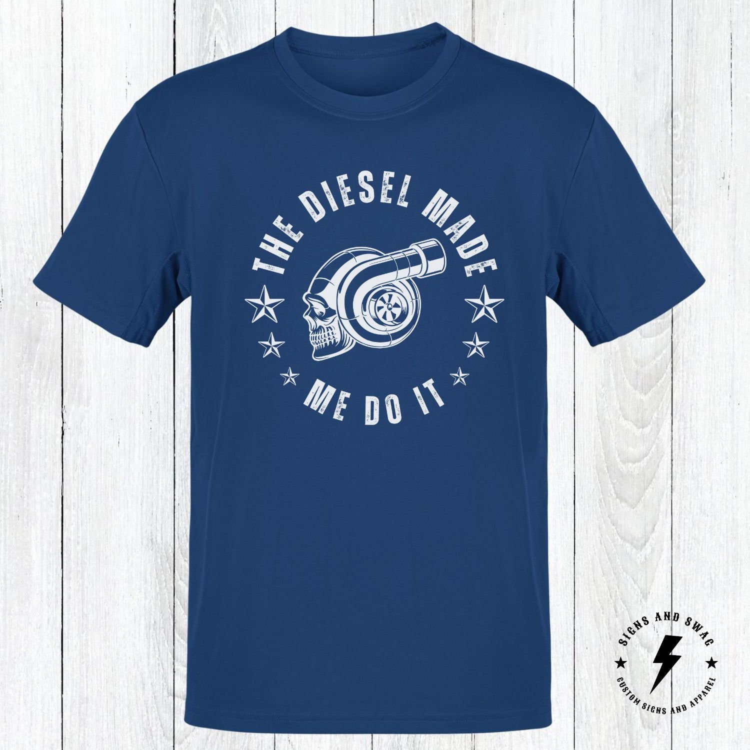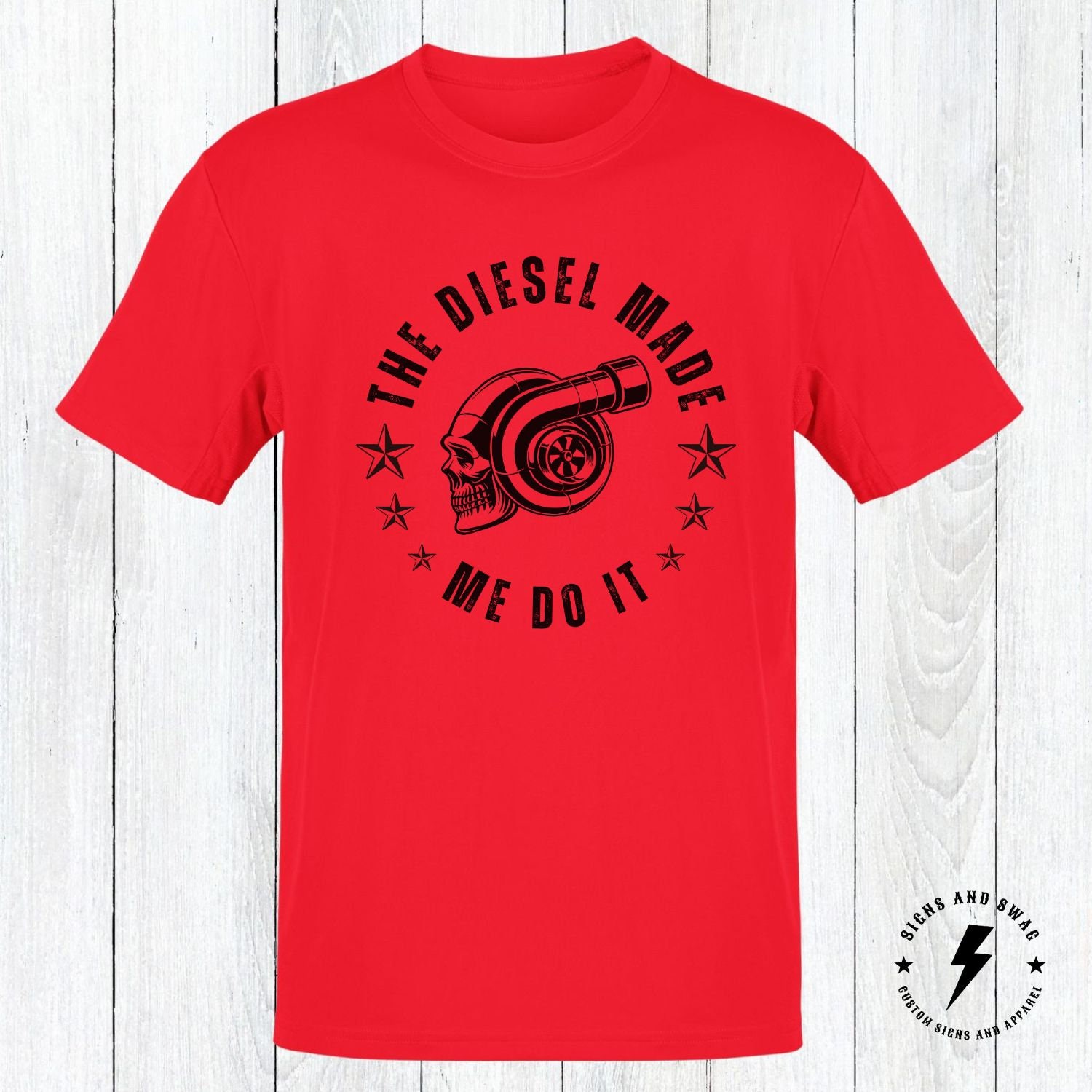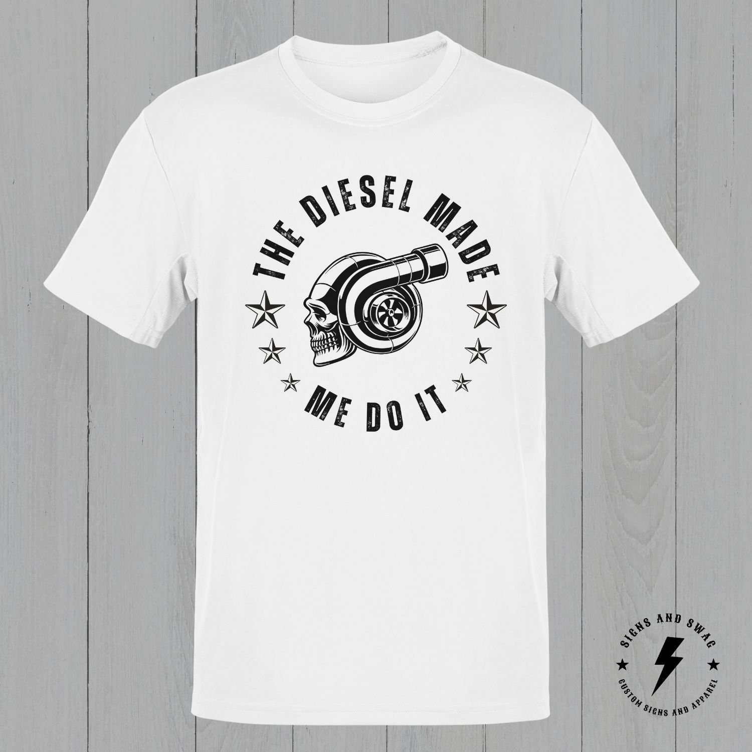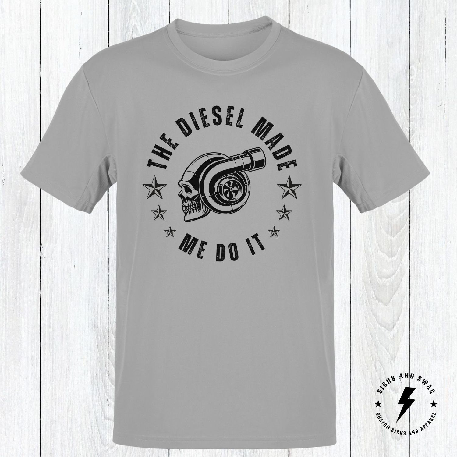 The Diesel Made Me Do It – funny diesel shirt. Printed on the Gildan soft style shirt for great looks and comfort!