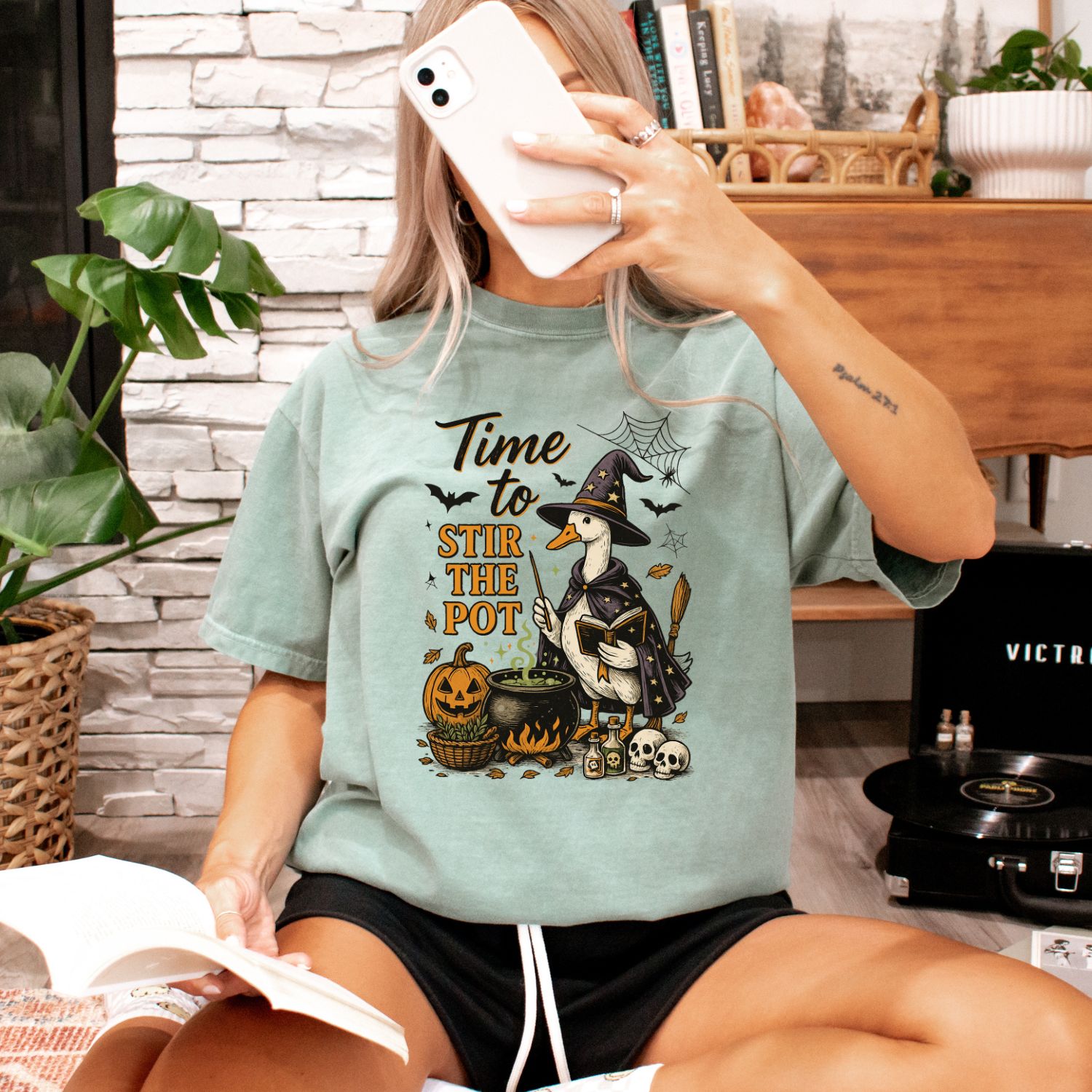 Time to Stir the Pot Goose Halloween Comfort Colors Shirt, Halloween Goose Tee, Funny Halloween Shirt, Silly Goose Halloween, Halloween Gift