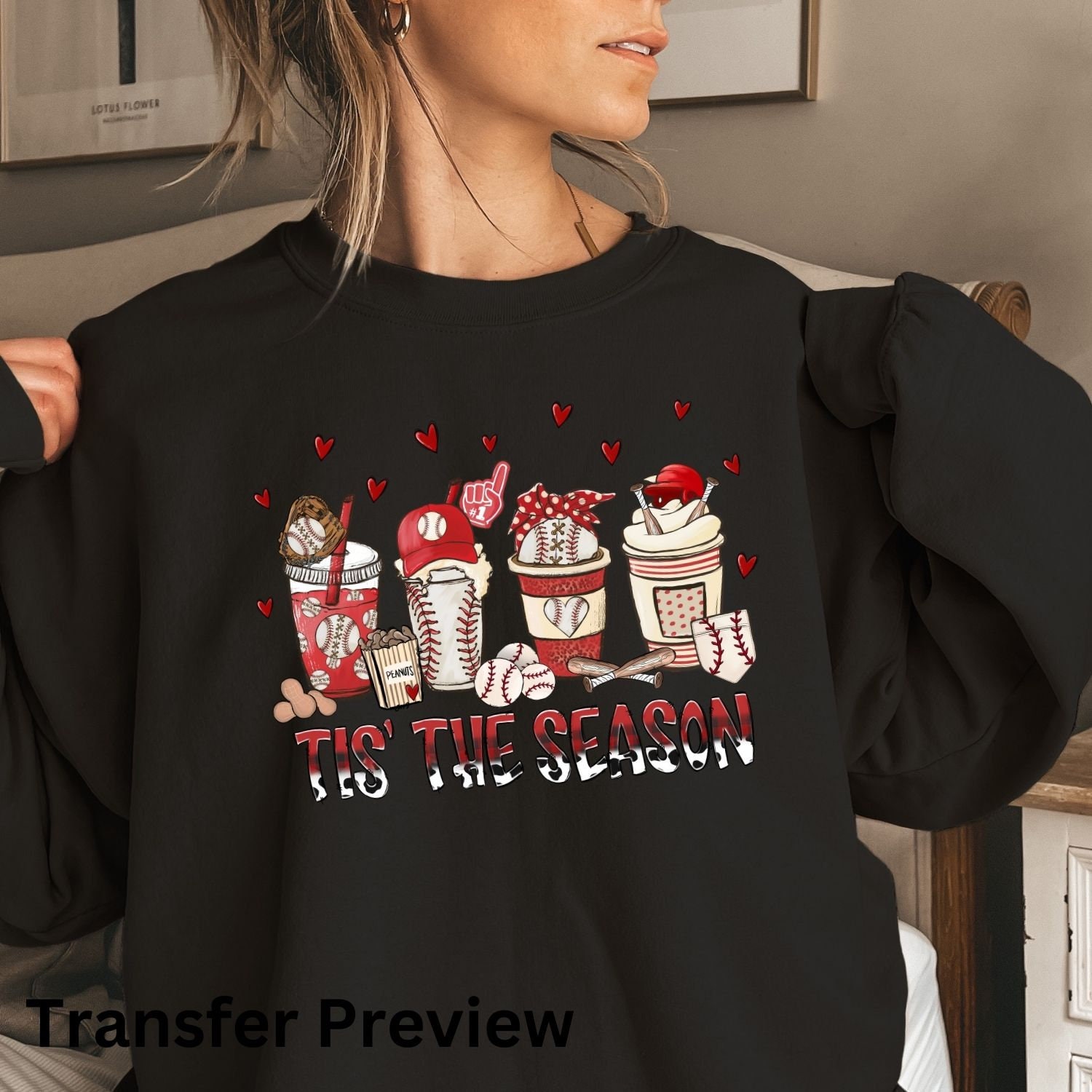 Tis The Season Baseball Transfer, Baseball Mom, Ready To Press DTF Transfer, Heat Press Transfer, No Weeding T-Shirt Transfers