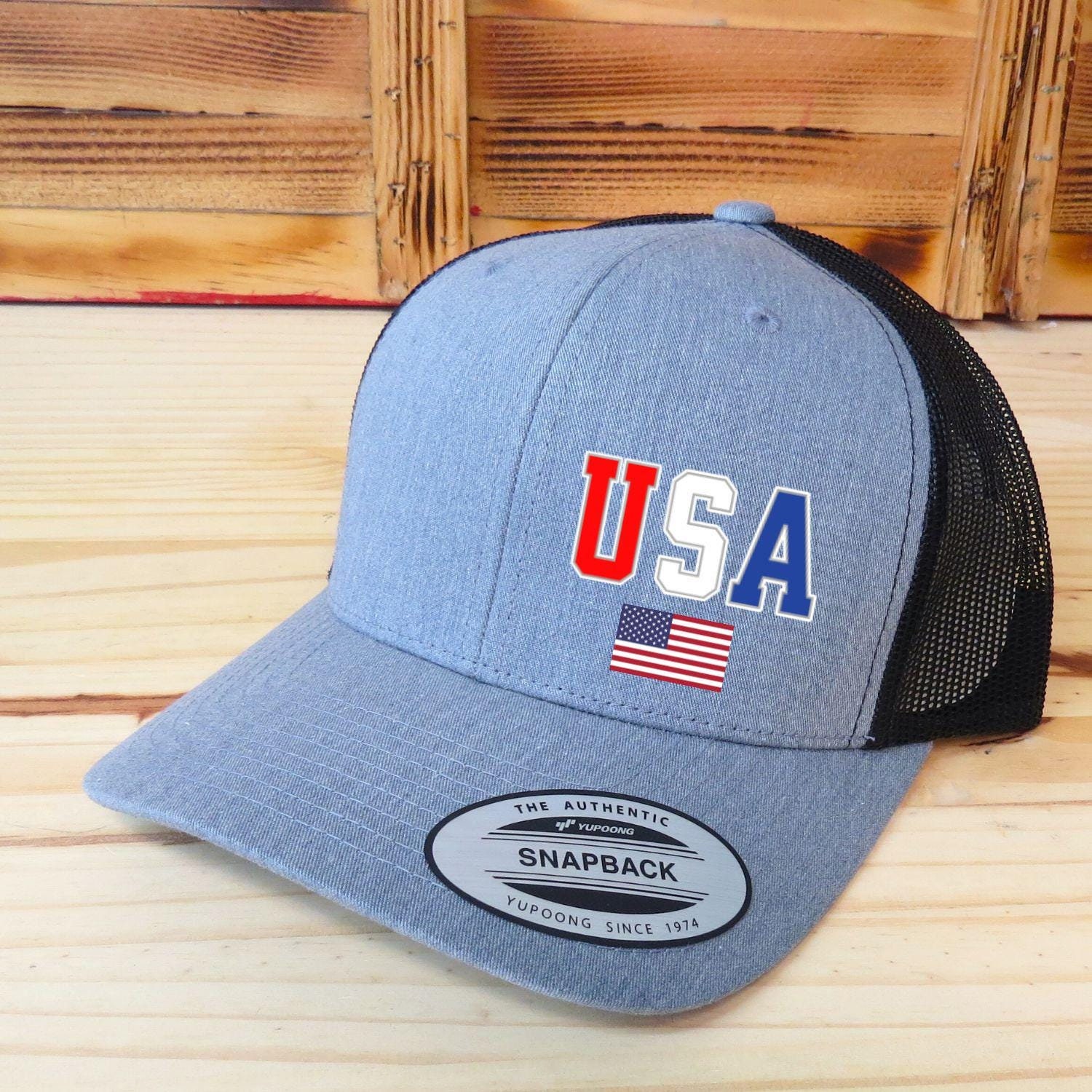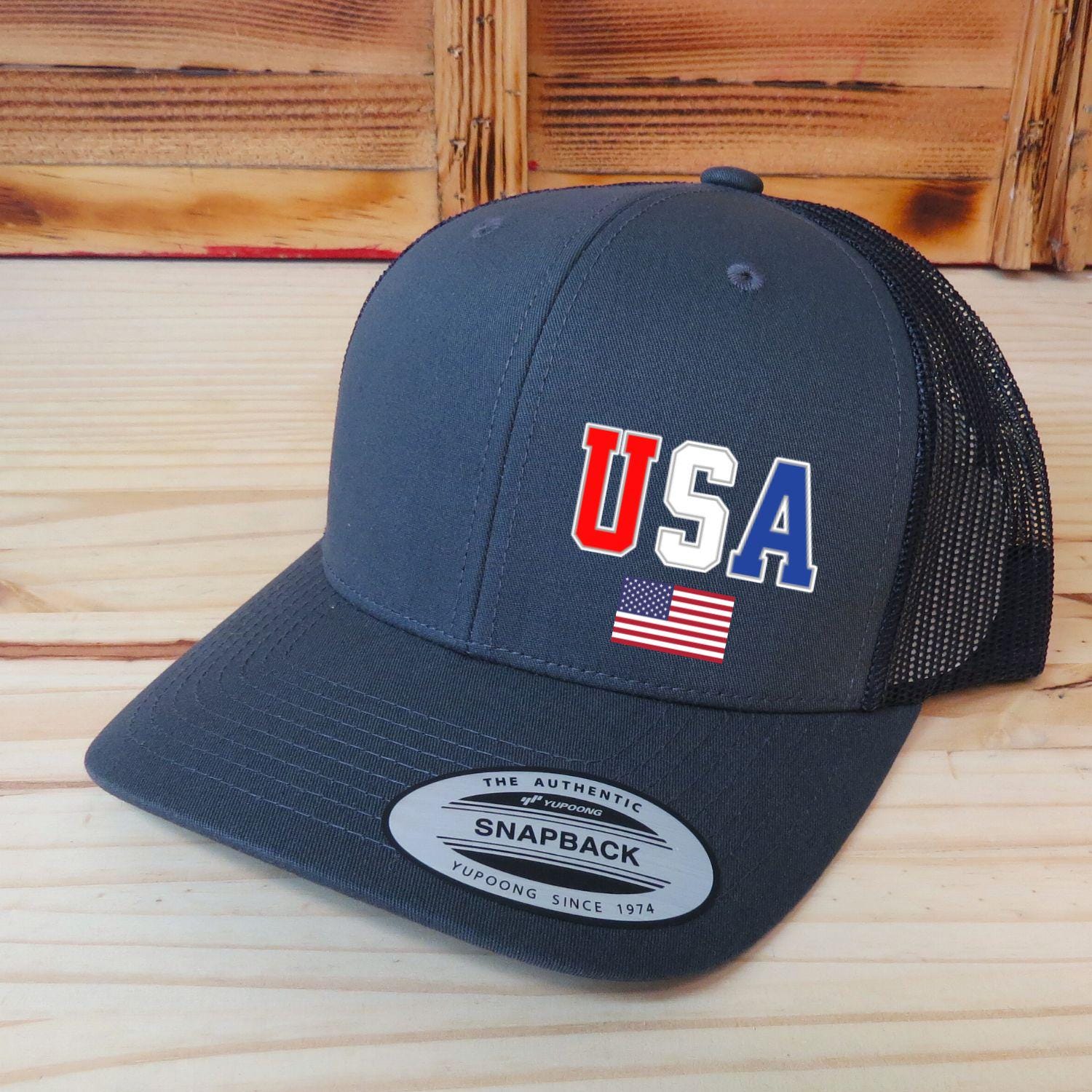 USA Hat, American Flag Hat, Retro Trucker Hat Mesh Back Snapback Closure, Adult Unisex